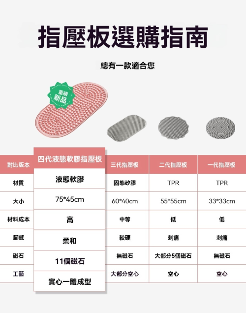 2分鐘前【第四代】實心軟膠指壓板放松按摩墊家用足底軟膠腳墊超慢跑疏通經絡趾壓板 - 新品嘗新「強化心肺 促進循環」 1入組 NT$998