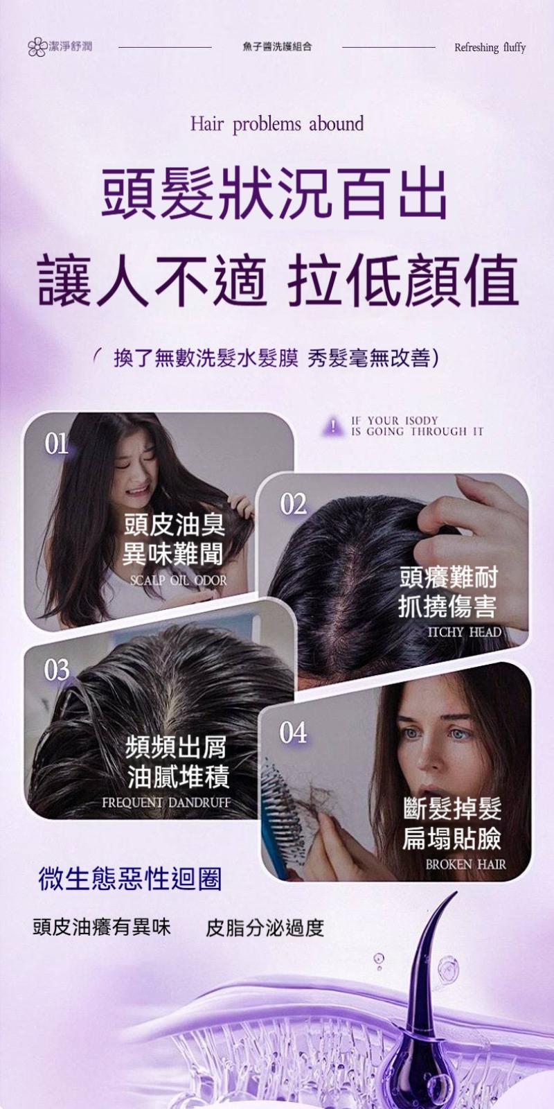 12分鐘前【海德老師推薦|魚子酱奢護洗護組】高濃縮營養補進髮芯,洗後髮絲滑順亮澤不打結,蓬鬆不油扁塌,光線一打還會反光,整天都精神~ - 【清爽雙倍控油 不塌更持久】 買二送二(控油洗髮精*2+修護髮膜*2)共4入組 NT1198